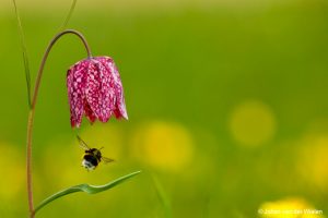 Bestuiving van kievitsbloemen gebeurt uitsluitend door hommels. Zonder het concept in gedachten had ik deze foto nooit zo gemaakt of bedacht dat ik hem zó had willen maken met de hommel precies onder de bloem.