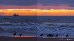 2021_03_09 JvdWielen_JR5_compilatie_LoRes 12 maart 2021 Met telelens is het bijna onmogelijk om de hele foto scherp te krijgen. Dit is een compilatie van twee beelden met scherpstelling op de boot of op de vogels.