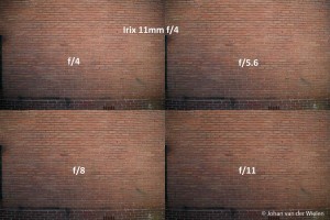 Vignettering Irix 11mm bij verschillende diafragma waarden.